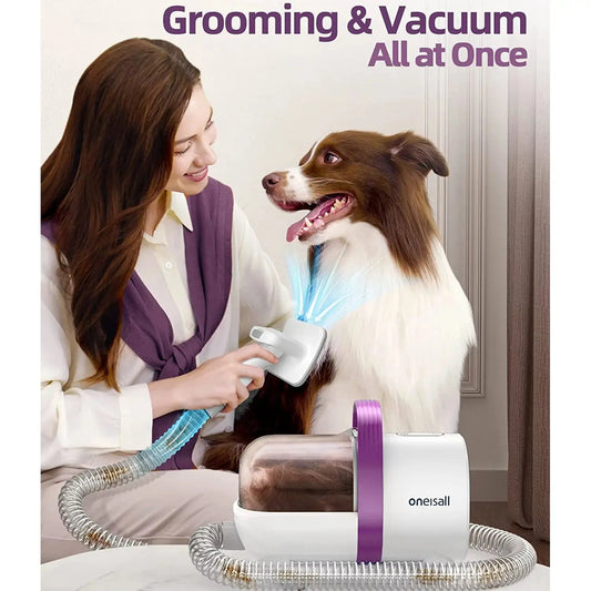 7 in 1 Dog Grooming Kit, Low Noise Pet Grooming Vacuum with 1.5 L Dust Cup, Dog Vacuum for Shedding Grooming, with 7 Professional Grooming Tools for Dogs Cats Pet Hair &Home Cleaning, Purple