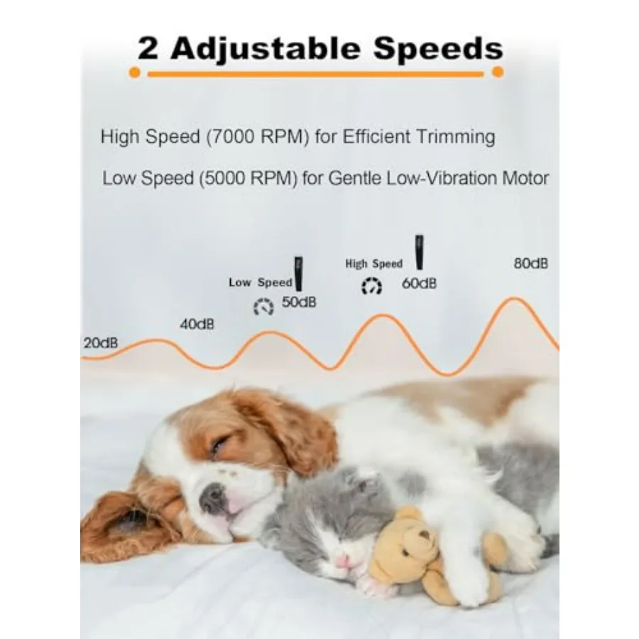 Smart Single-Button Control: Your ultimate small animal clippers in one! One press starts High Speed (7000 RPM) for quick trimming, press again for Gentle Low Speed (5000 RPM) around sensitive zones. Final press powers off instantly – no confusing modes!