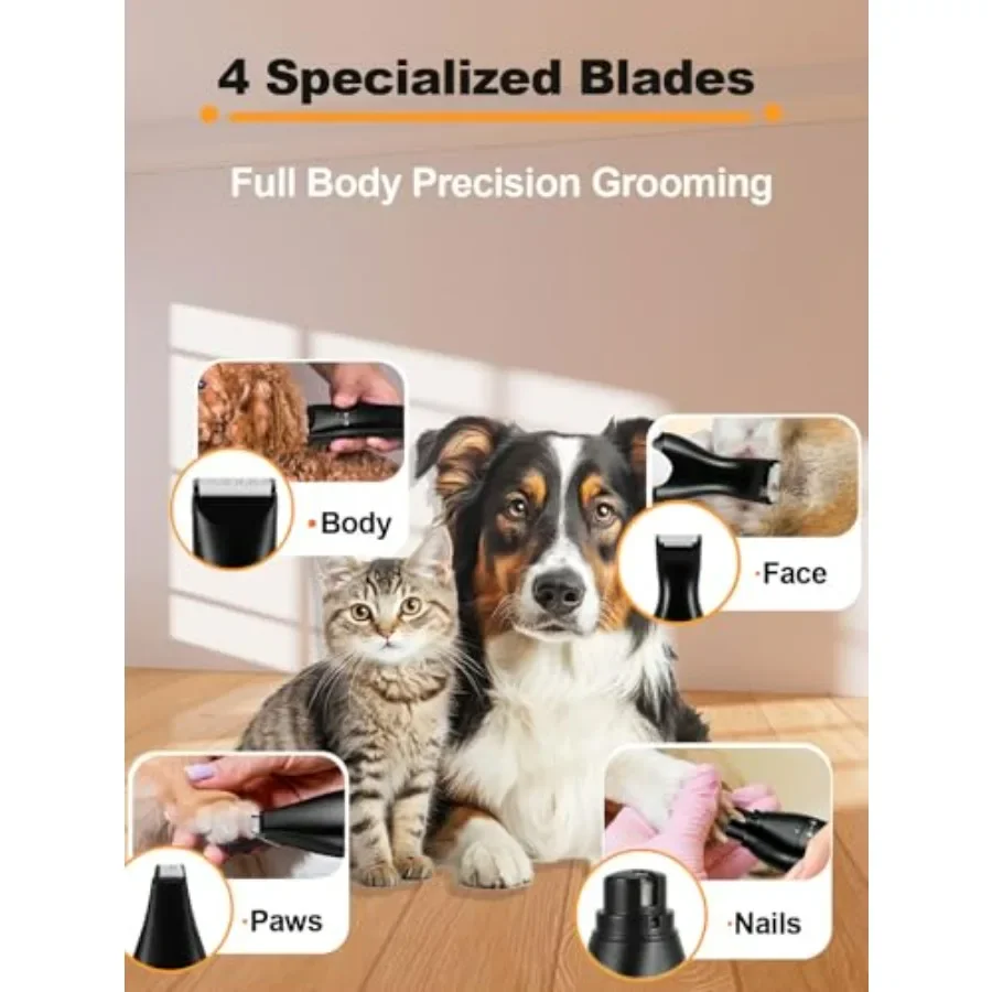 4 in 1 Cordless Dog Grooming Kit with 2Speed Clippers USBC Rechargeable Nail Grinder and Paw Trimmer for Small Pets Ideal for D